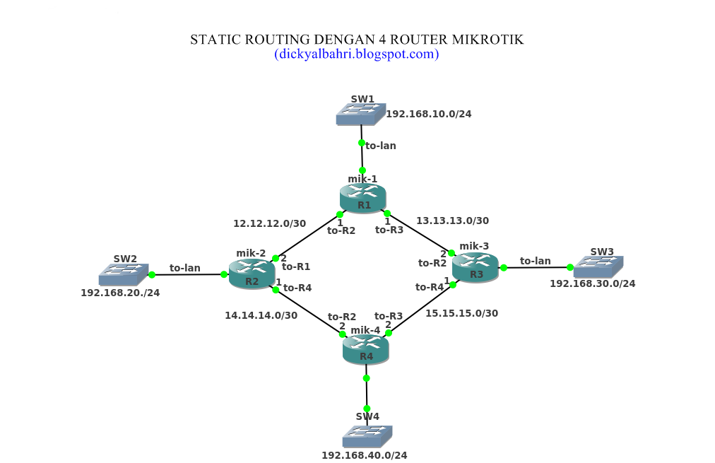 Semoga langkah-langkah Static Routing Dengan 4 Buah Mikrotik Dengan GNS3 yang saya buat dapat dimengerti dan bermanfaat.Dan juga perhatikan konfigurasi yang kita buat jangan sampai ada yang salah.